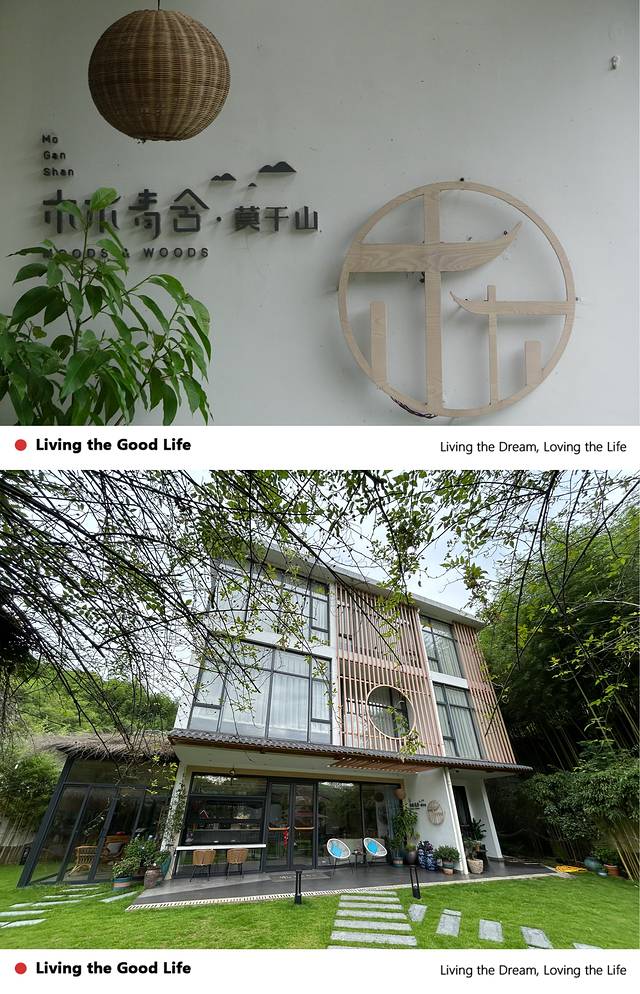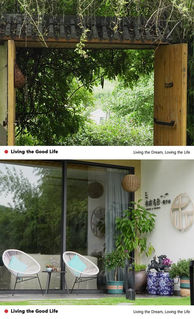 木木民宿坐落于莫干山,四周群山环绕。沿着石梯向上几步,拐个弯就是一扇庭院木门。