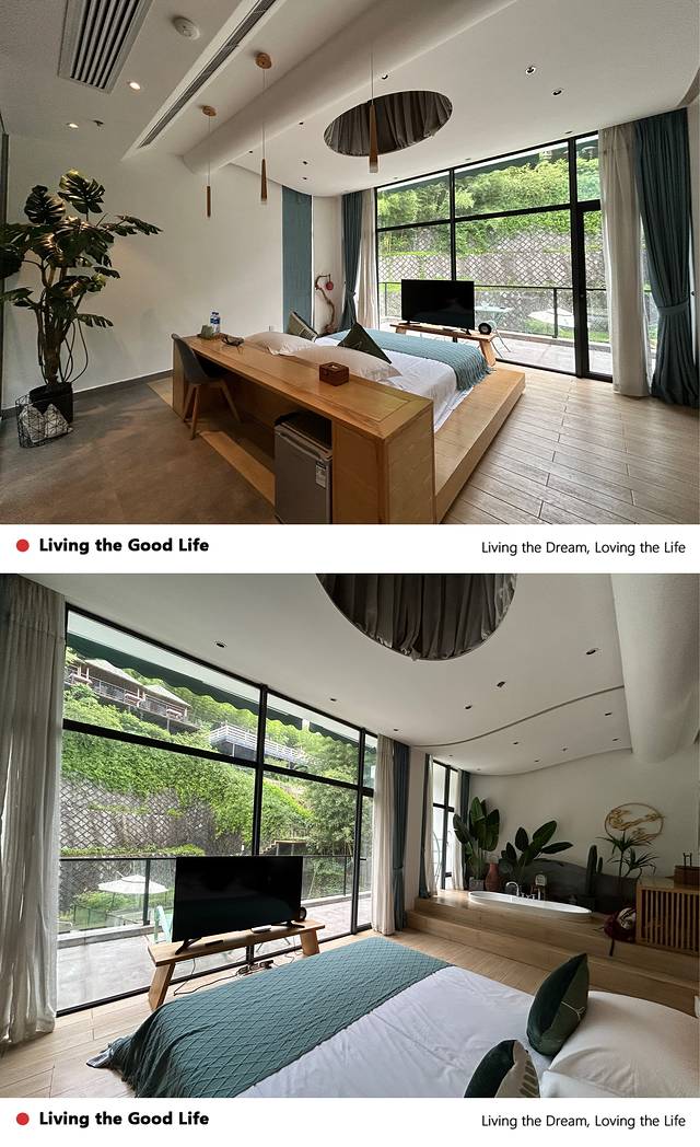 木木民宿含有9间客房,我们这次选择的是云尚山景露台浴缸大床房