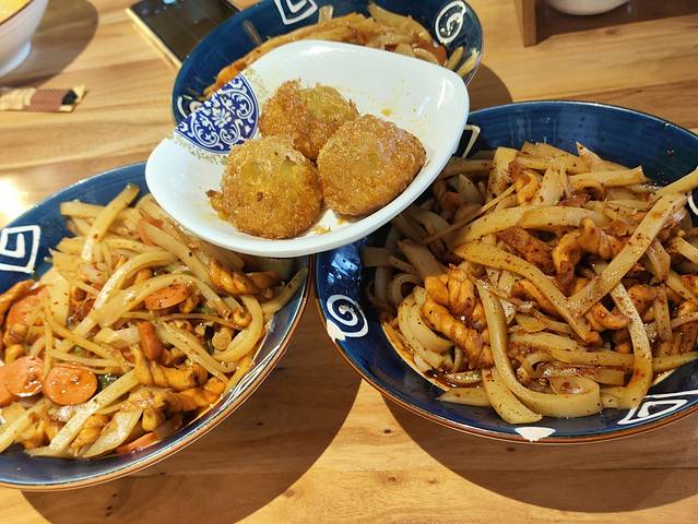 ◾️炒碗托:这个真的还不错,我是山西人比较能吃醋,酷酷就是加醋,我个人感觉加点醋更好吃,点的麻花素炒碗托(中辣),碗托的软搭配上麻花的酥脆,真的不要太好吃,10多R一大碗