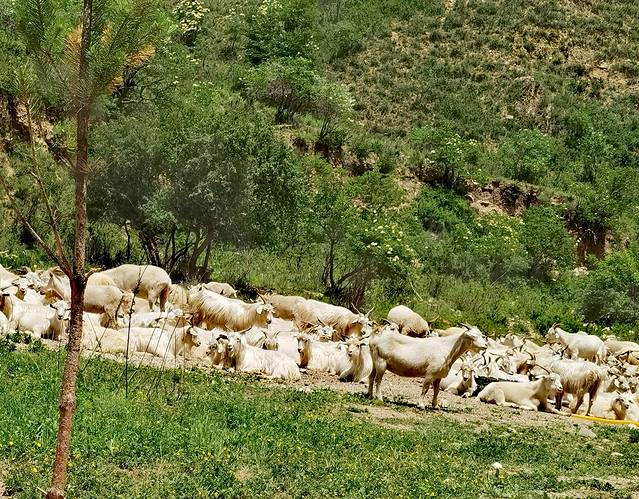 路上的羊群。