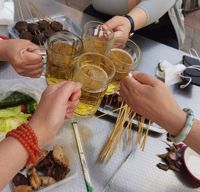 晚上在县城的一个民宿小区外的烧烤店吃的烤串,当地羊肉很不错,还便宜。
