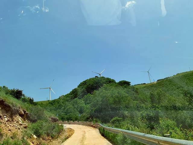 随着上行,就开见了风车。一路上坡。