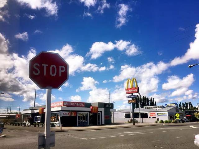 晚上9点的样子,奥克兰的天空还是那么的晃眼,万里无云。我很喜欢,但是街上的很多店铺都关门了,这让我怎么吃宵夜呢~ 只有炫一个麦当劳了~