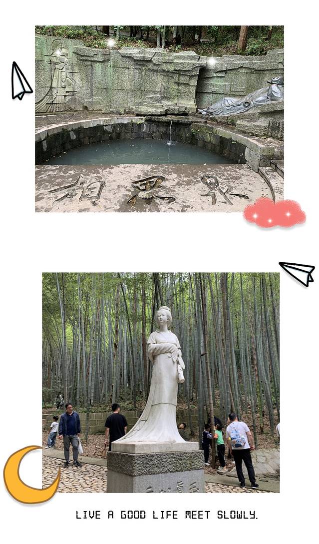 沿路下山,来到苍翠的竹林中,看到相思泉,。埋葬着一位1200年前美丽的玉真公主,安史之乱后追寻李白隐居敬亭山。后香消玉殒魂寄斯山,百姓将其安息之地称为玉真公主冢,世代祭拜。李白的“众鸟高飞尽,孤云独去闲。相看两不厌,只有敬亭山。”借赞美敬亭山的同时,蕴含着对玉真公主的深深怀念之情。