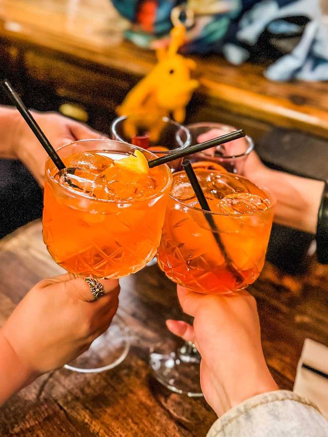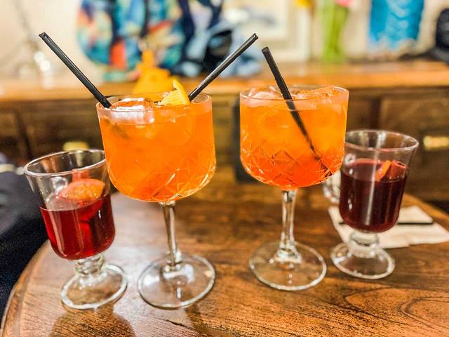 找到她们,小伙伴们已经把酒水准备好了,2杯桑格瑞亚(sangría)2杯肉桂红酒