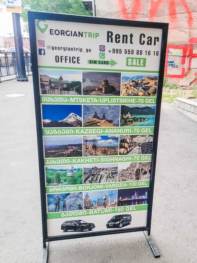 当然,如果你不想租车,要去 第比利斯 周边游玩的话,路边非常多这种一日游的广告牌