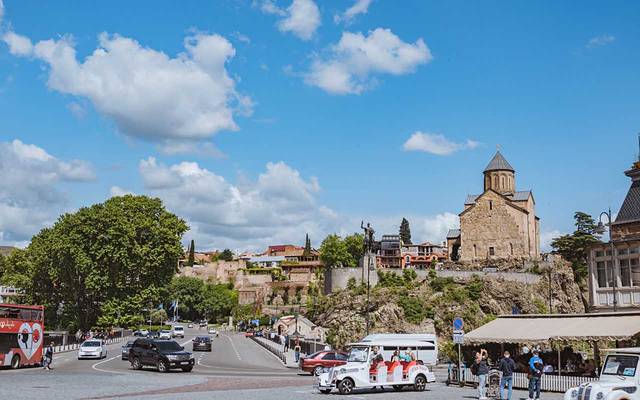 这里有双层观光巴士的站,有巨大的“I❤Tbilisi”的拍照打卡标识,还有租车行以及很多一日游的报名车