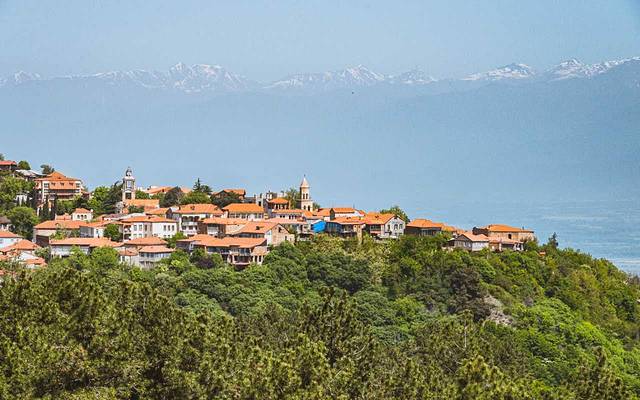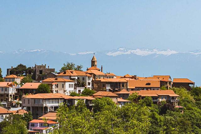 ▼雪山背景下的红酒发源地,西格纳吉~