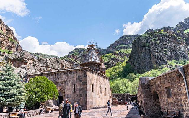 穿过门洞,就进入了圣矛修道院Geghard Monastery内。