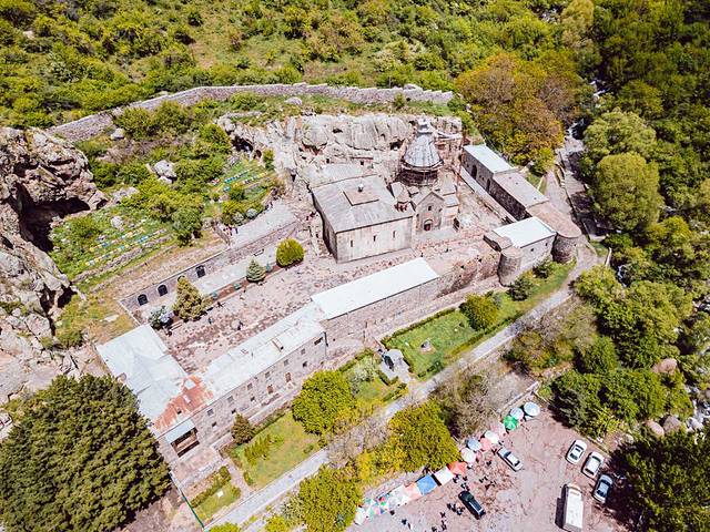 大概开了半小时吧,到了格 加尔 德修道院(Geghard Monastery)