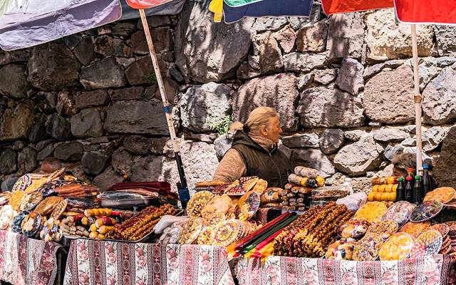 停车场旁聚满了贩卖土特产和手工艺品的摊贩,摊子上看到形如 广东 腊肠的物品,一开始真的以为是风干腊肠,试吃了一下才知道,这便是 格鲁吉亚 传统甜食切克赫拉(Churchkhela),下图条状物