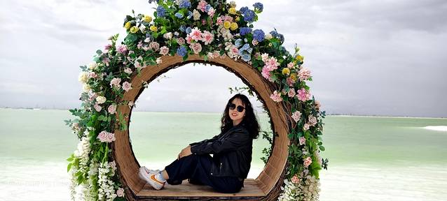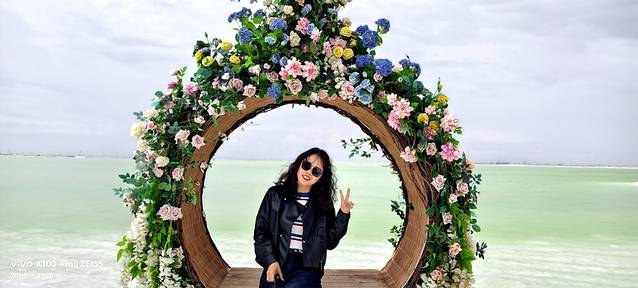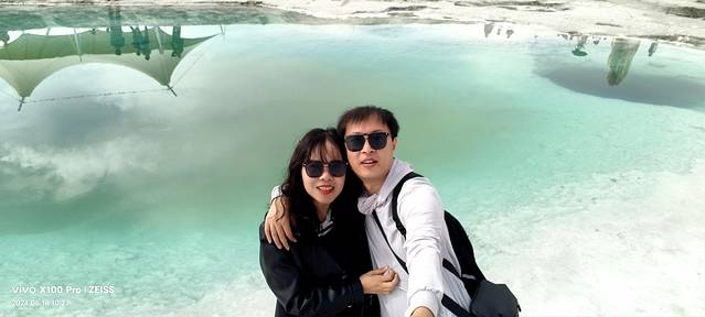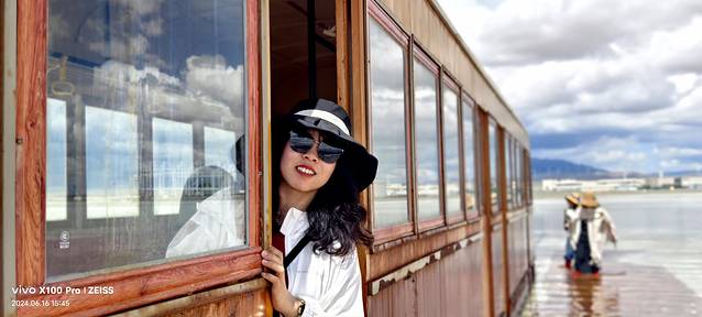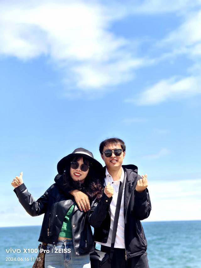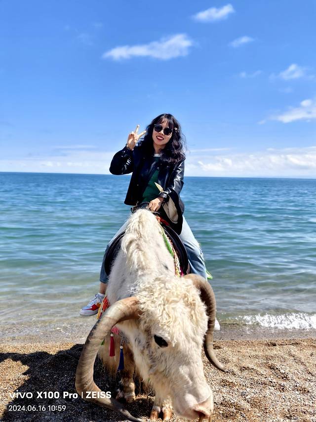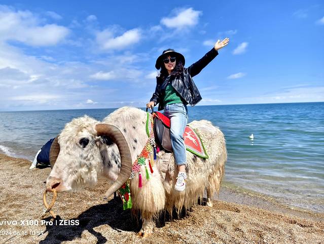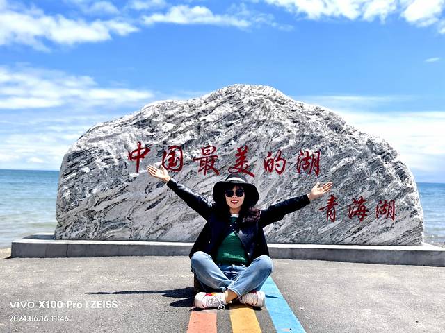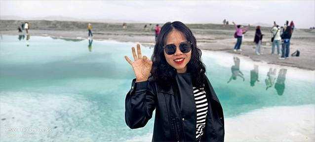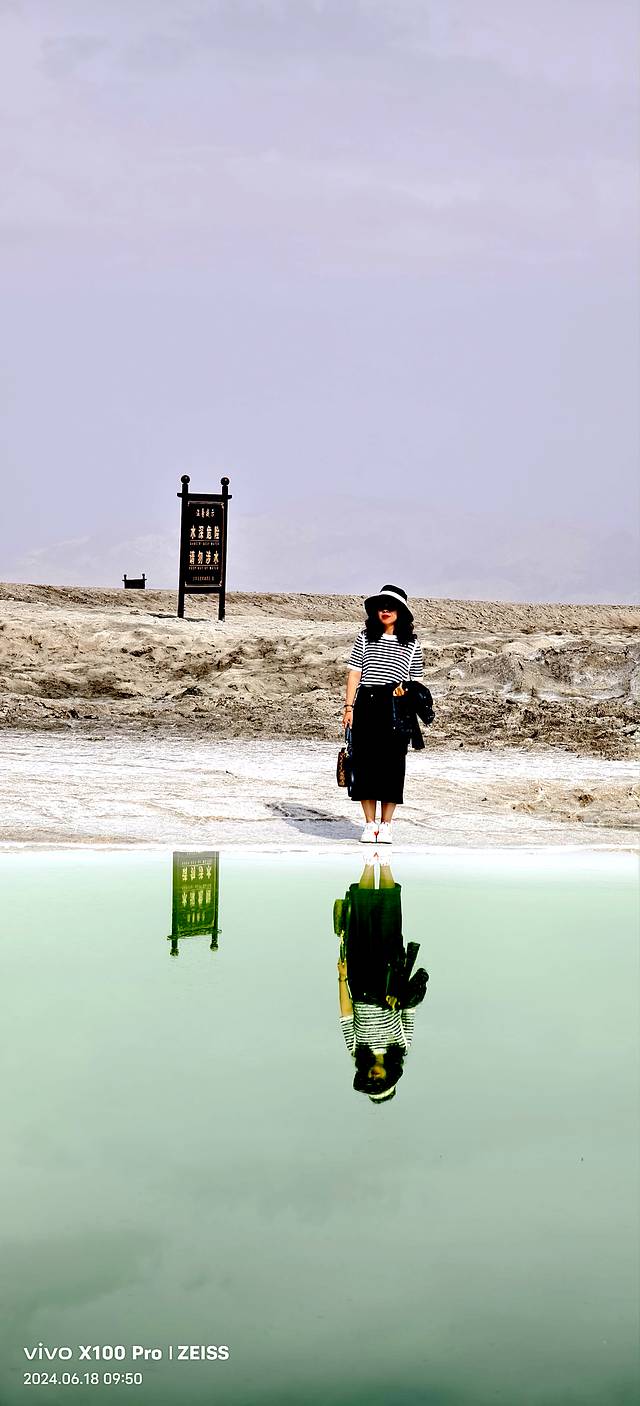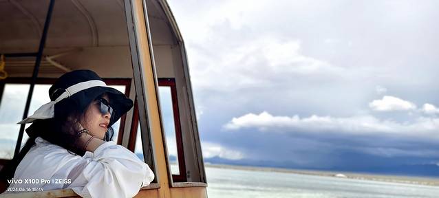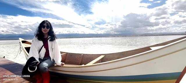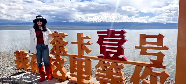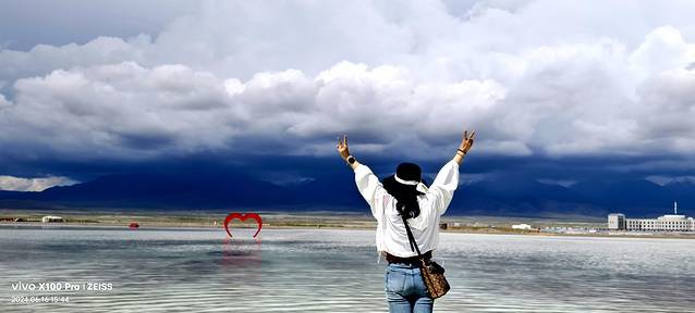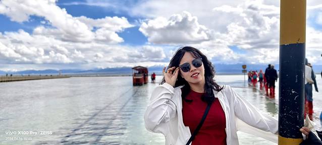 下午2::30到达茶卡景区,买门票和小火车票(一定要买,要不然走断腿),坐小火车一定要按照顺序下车游玩,我俩就是有两个景点没下,结果又重新坐了一遍小火车。6月应该是雨季,景区盐湖水比较大,加上有风,完全没有拍到镜面,不过天空一号相比于天空之境来说,打卡的标志比较多,但是感觉盐湖面积没有天空之境大。