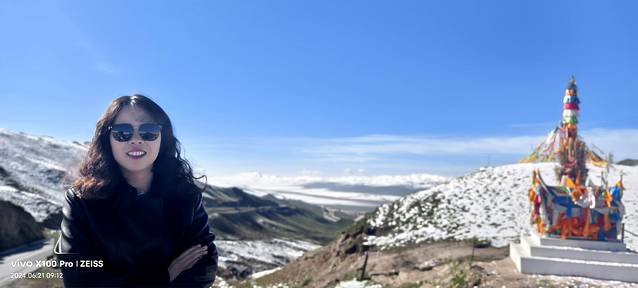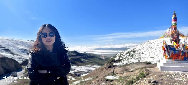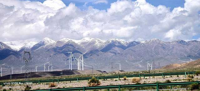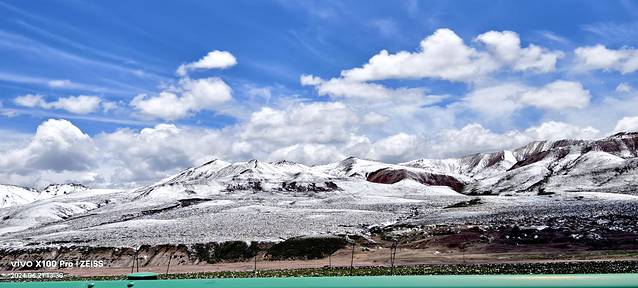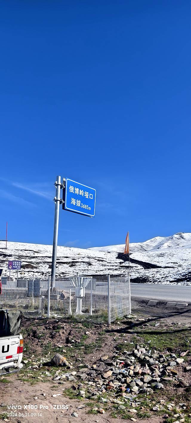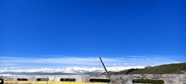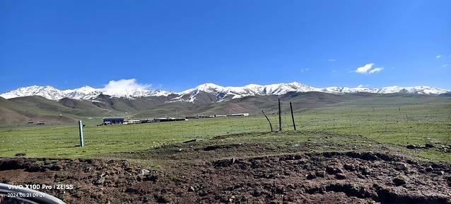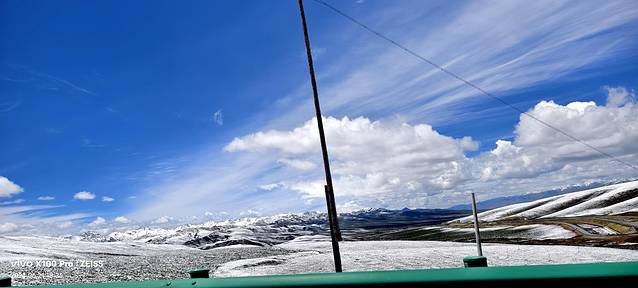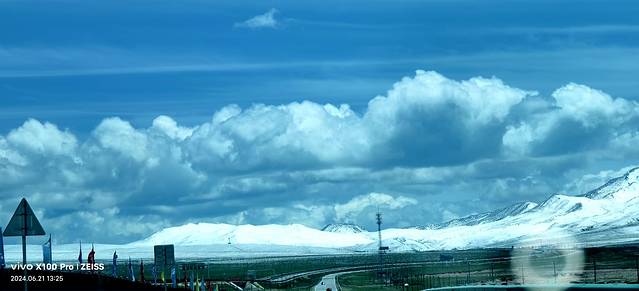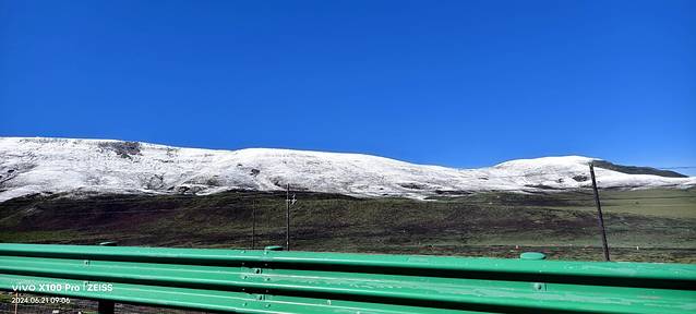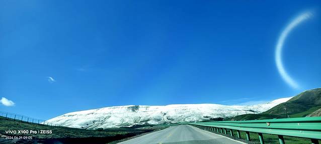 一路上张汶高速,在走227国道翻越祁连山的时候我们路过了扁都口,正好赶上昨天晚上下雪,我们看到了雪山。在6月下旬看到雪山还是很不容易的,运气比较好。