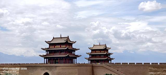 从大地之子出来后,直接上连霍高速,开3个小时左右就到嘉峪关了。一路上大货车是真的多,而且有的路段在修路,自驾还是要注意安全。在嘉峪关景区吃了午饭,然后买了门票(包含三个景点),在景区做了观光车。我们俩请了一个导游给我们讲解,但是这个导游真的是一言难尽,好像在赶场子,语速特别快,有时都听不清。嘉峪关历史我就不介绍了,大家可以百度搜索,来到这种地方就是要学习历史文化,要不然这种景点真的没什么意思。关城还是比较壮观的。逛完了关城,我们坐观光车出来时,看到了另外一个游客中心离关城比较近,应该是以前旧的,但是也可以进入,给大家说一下。