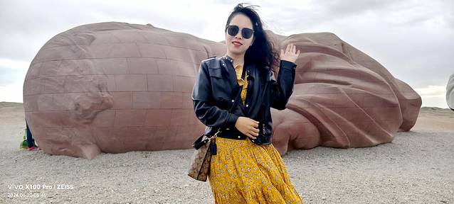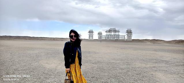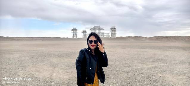 早上7:10我俩准时出发,出发的时候是有下雨的,沿着柳格高速和270县道行驶了差不多1小时30分钟,我们开到了大地之子,到了大地之子后刮大风下雨,我又没有敢飞无人机,所以下了车之后,我和媳妇匆匆拍照打卡继续赶往嘉峪关。