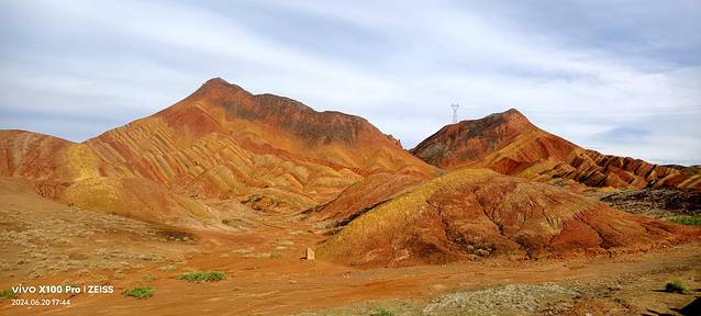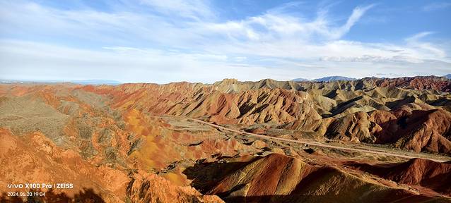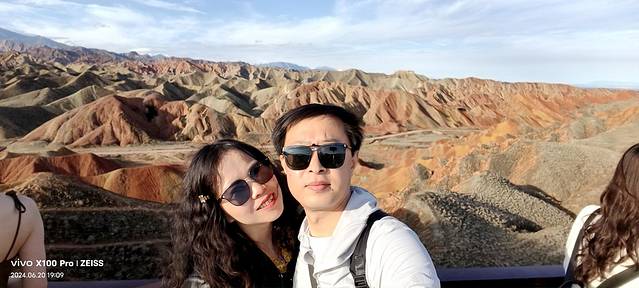 沿着连霍高速,继续行驶2小时30分钟,我们在下午5:00左右达到了七彩丹霞景区,因为我们去年国庆在兰州玩了水墨丹霞景区,所以这次对张掖七彩丹霞没有报特别大的期待,在景区逛了差不多2个小时,我们俩就累的赶快结束了今天的游玩行程,开往张掖酒店休息了。晚上休息的时候媳妇又拉肚子了,折腾了一晚上。