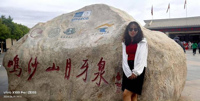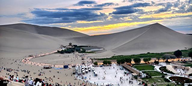看完又见敦煌回到酒店已经下午4:30多了,我俩把中午剩的外卖一吃,换了一下衣服,然后出发去鸣沙山,这次还是打车去的,没有开车。