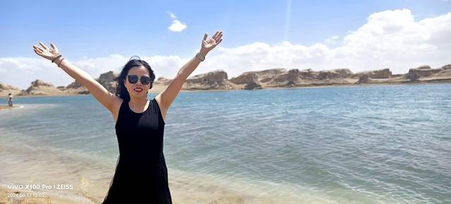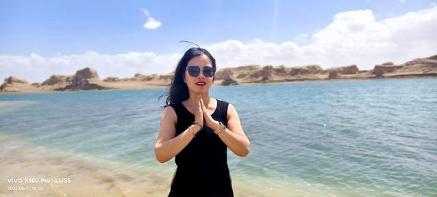 东台吉乃尔湖距离水上雅丹15分钟左右的车程,我们6月17号去的时候可以随便进,也免费停车,就是入口距离湖有点远需要走10多分钟吧。东台吉乃尔湖不愧是“中国的马尔代夫”,美丽不必说,蓝色的盐湖水很清澈很美丽,真的很美。风太大,像我的mini 3 pro不太敢飞,因为我看见有飞机炸机了,所以也就没飞,还是挺遗憾的。