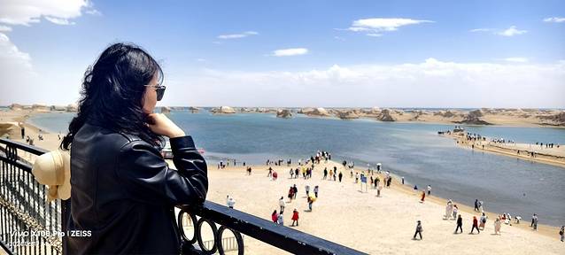 早上在酒店吃过早餐,就开车去往大柴旦翡翠湖,15分钟就达到景区,排队买票,顺利进入景区。由于大柴旦翡翠湖还是修建所以景区内设施景点还不是特别完善,而且这个景区只有无人机才能拍出来,单纯使用手机或者相机很难出片。我和媳妇也是匆匆打卡,拍照逛了一圈就出发前往敦煌了。