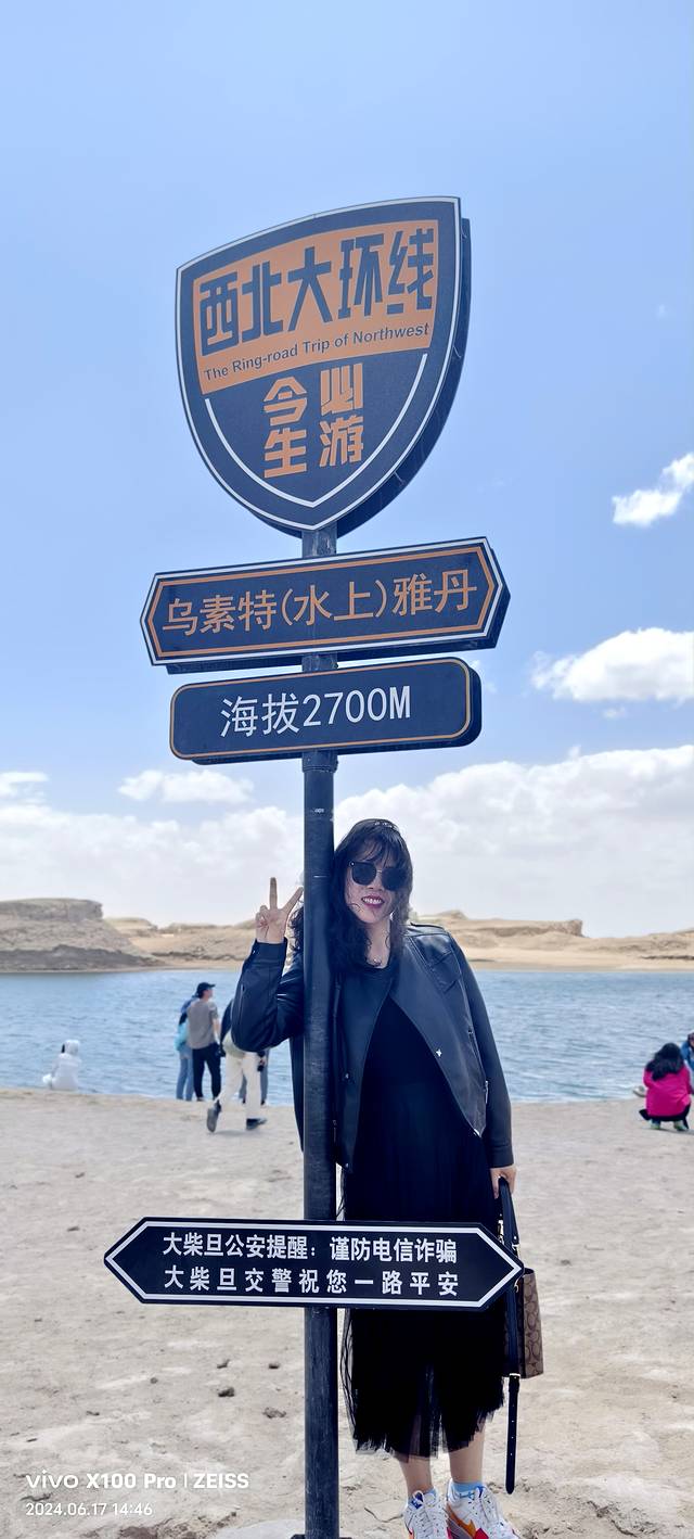 本来以为今天的路程会非常赶,但是真正跑下来一点也不赶。早上6:18出发,前天晚上忘记加油了,在去往察尔汗的途中找了个加油站(加油站真的很少,一定要加满油),然后停电了,只能现金付(一定要备现金)。行车2小时30分,9:00左右到达察尔汗,买票进景区。察尔汗景区还是比较好玩的,湖水是绿色的,无人机飞出来真的很美,和媳妇一边打卡一边闲逛,没啥说的,直接上图。逛到11:30后,在游客中心吃泡面(只有泡面)和昨晚剩的炕羊排。