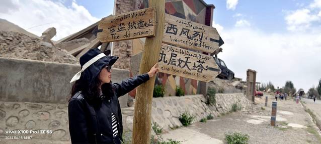 先前往石油小镇,在前往石油小镇的路上一定要少喝水并且出发前上厕所,因为一路就一个服务区可以上厕所。我们走的是柳格高速,这个高速的路是真的直,而且比较平坦一望无际的望不到头。开了3个多小时到达石油小镇。购买门票和观光车票入园游玩。关于这个石油小镇,曾听说过各种千奇百怪的传说,最经典的传说就是1983年,阿克塞石油小镇在一夜间遭到不明原因袭击,第二天,繁华的小镇已渺无人烟,变成了一片废墟。 这里也是电影《九层妖塔》取景地,电影的剧情就是根据传说改编的。打卡的道具很多,但是不推荐游玩时间太长。