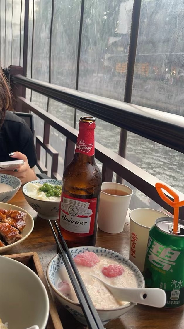 晚餐一份鱼皮,一份艇仔粥,再来上一罐珠江啤酒。