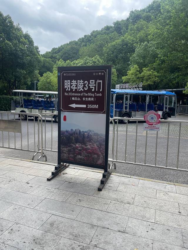 地铁苜蓿园站(2号线)1号口出站,跟着指示去明孝陵3号门。