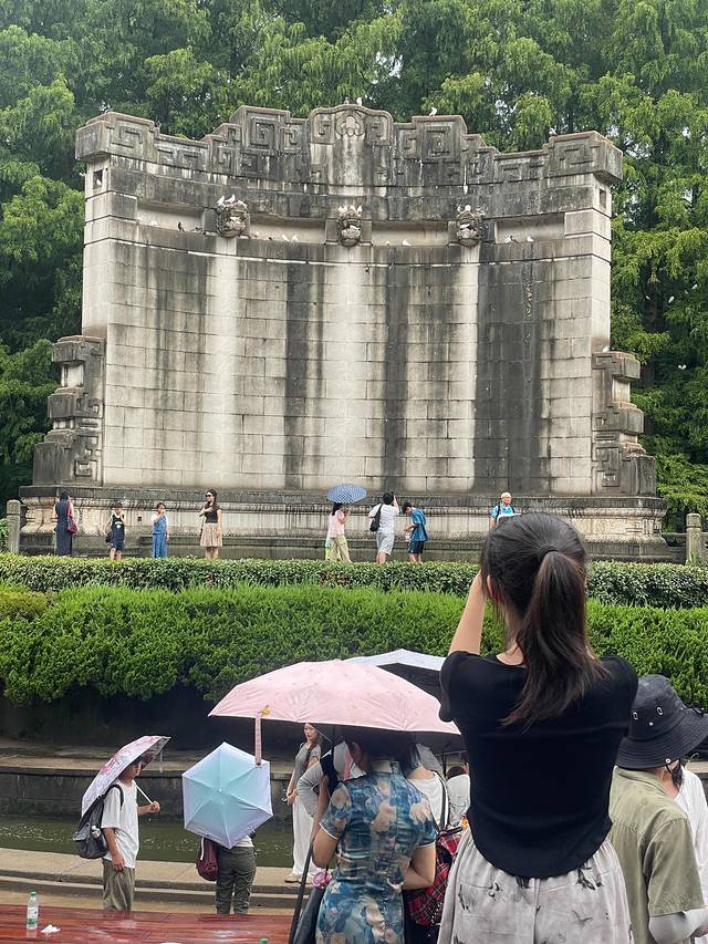 中山先生是1925年在北京逝世,遗体放了四年,1929年才沿津浦铁路从北平运到浦口火车站,就是朱自清《背影》里和老父亲分别时的车站后,再由浦口码头渡江到中山码头,最终运送至此,进行奉安大典。中山先生的墓碑高8.1宽4米。