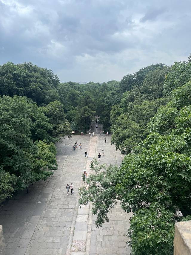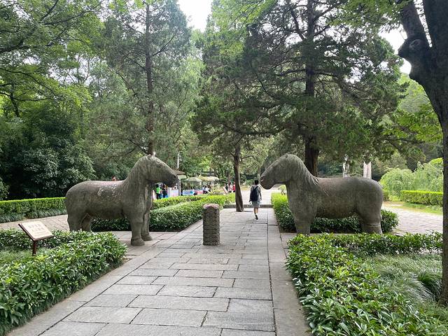 我们没有去美龄宫,下了地铁沿着梧桐大道直接从3号们进入明孝陵后跟着指示直插到神道(石像路)中段,然后顺着神道去往陵宫,从7号们 出明孝陵坐游览车到达中山陵,随后去了音乐台。