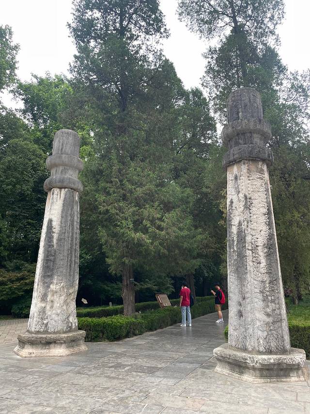 石兽的尽头,神道折向正北,至棂星门,长250米。这段神道置石望柱和石人,2根望柱呈六棱柱形,高6.6米,其上雕刻云龙纹。通常望柱均置于神道的最前面,而明孝陵的望柱则置于神道中间,这也是朱元璋的独特之处。石望柱之后是东西相对而立的翁仲,有武将、文臣各2对,共8尊,高各为3.18米,石人石兽的体型都很巨大,是明代石刻的艺术珍品。