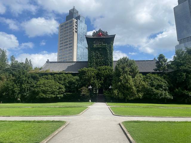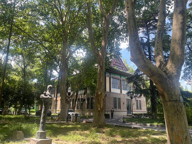 南京大学鼓楼校区是原金陵大学的原址,保留了很多有历史感的建筑,校门里面路两旁的树也有一定历史。