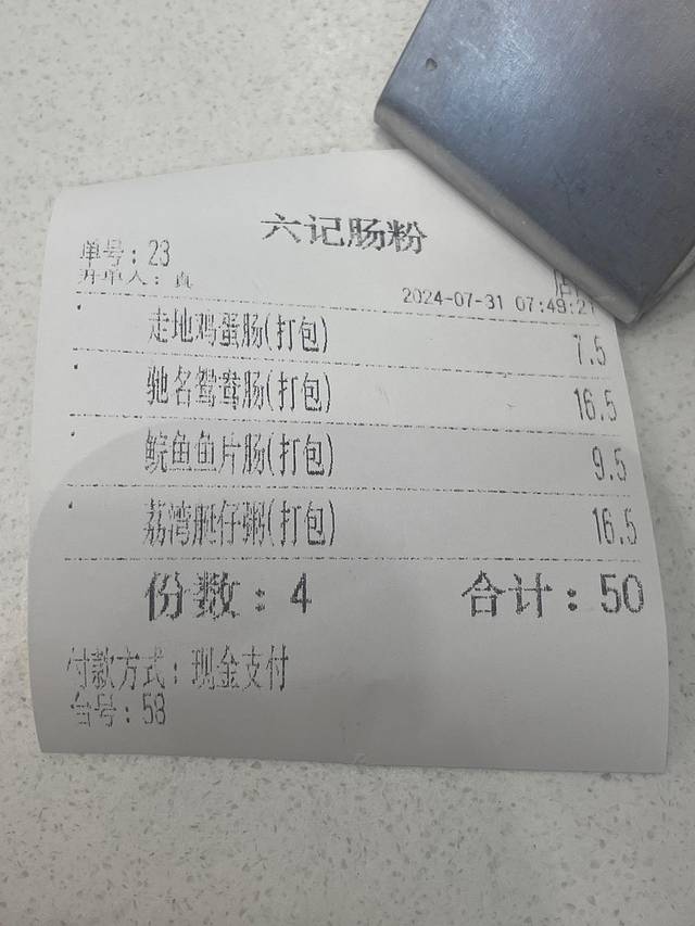 一早起来,感觉不带点好吃的回程不甘心,于是又跑到酒店不远处的六记肠粉打包了一番