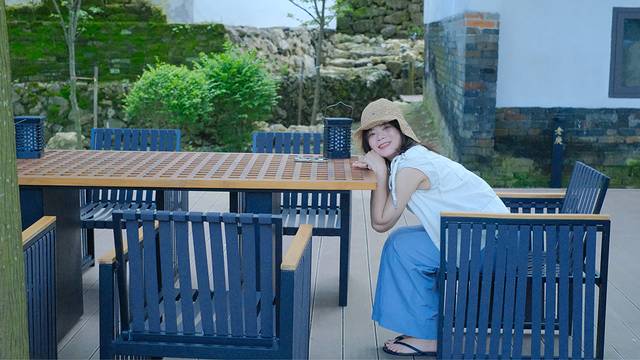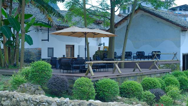 民宿的接待总台是一间古屋改成的咖啡屋,兼具吧台的功能,端着咖啡杯,抬头仍可见古屋留下的木梁,顶上透光的天窗,还有泛黄的土墙,如今以传统作法和工艺修缮一新,仿佛这儿是一个时光隧道,带我们穿越那个淳朴的年代。