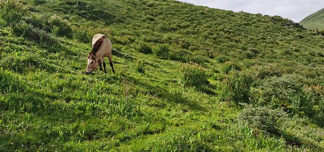 很多天的海拔都在3000以上,开始会有头疼的感觉,幸好带着葡萄糖,倒嘴里一包就好的多,后来几天就适应了,高原也无感了。