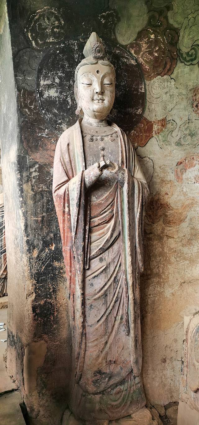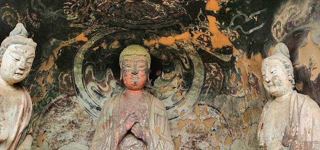 麦积山石窟创建于十六国后秦时代,历经十多个朝代的开凿和重修,现存221个窟龛,造像、壁画众多