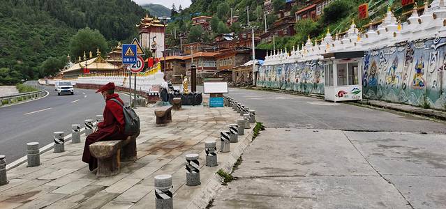 在不大的街道上,坐落着二处郎木寺,四川郎木寺(格尔底寺)和甘肃郎木寺(赛赤寺)