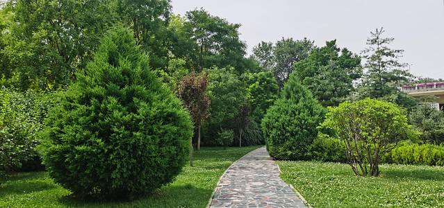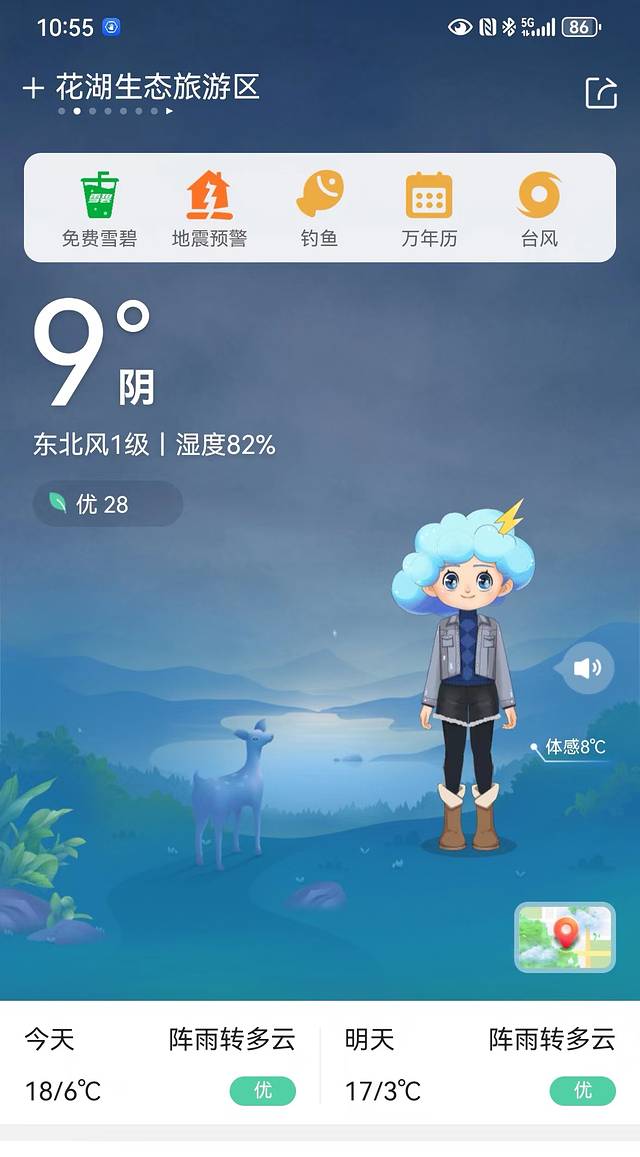 上午的气温不是凉爽,是有点冷。花湖景区内植被茂盛、遍布湖泊,小风夹杂着零星阴雨,更加显得湿冷