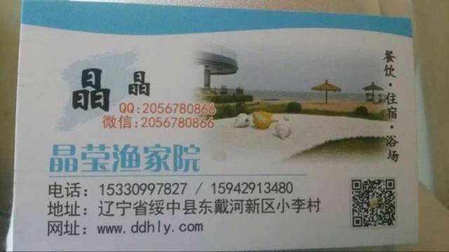东戴河晶莹渔家院名片!想去的可以加老板微信!