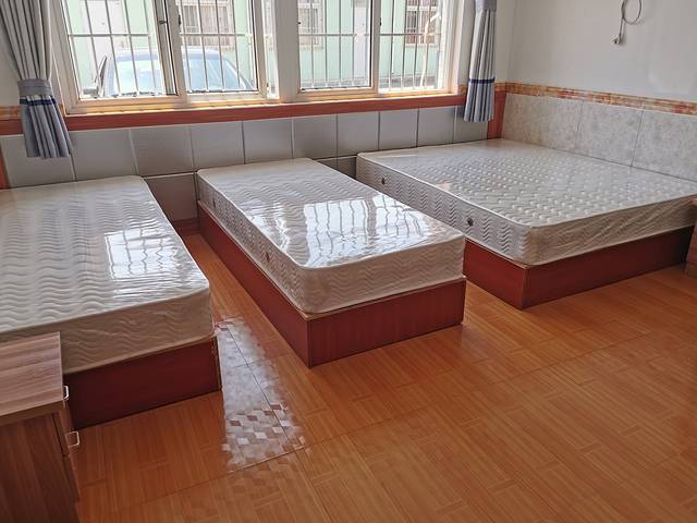 今年老板新换了厚厚的大床垫子,因为海边潮湿,必须用大床垫子!很舒服!床单被套都是一客一换的。