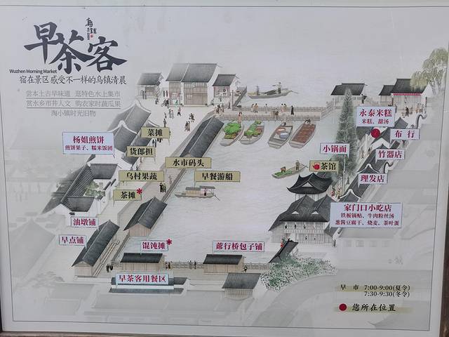 早茶客是景区内住宿的专属体验,入住时就可以预约,如果到达的比较晚第二天的已预约完可以自费享用。在景区的水上集市用餐,环水一圈的座位。