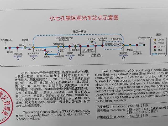 想要拍照的旅驴友一定要注意错峰观景。小七孔的景点较多,想游玩所有景点,至少准备6-7小时。轻松一点就像我们一样分为两个半天游玩。之前看了攻略,驴友多数建议从西门进东门出,因为这样是一路下坡路走起来比较轻松。少数驴友建议从东门进西门出,这样可以避开人流。我一向是喜欢人少的,所以尽量开高峰,也是准备从东门进西门出,走点上坡路就当锻炼了。原计划是早上景区一开门就从东门往西门一路上坡游玩。由于行程提前,我们在头一天下午就到景区。小七孔的票是可以玩一周的,观光车票是2日内有效,所以我们来了就直接进去看看情况。下午2点30分左右从东门进坐10分钟摆渡车到达小七孔站。在车上刘看到密密麻麻的人群包围这小七孔桥打卡。桥上,两岸全是人,如果不是管理员维持秩序,想上桥是很困难的。按照从西门到东门的游玩顺序,下午游客基本都集中到东门了。我估计这时西门的游客肯定很少,于是果断决定,放弃之前的计划,先到卧龙潭。从西门向东门玩。10点以后是没有摆渡车从东门直接到卧龙潭的,这时想要到卧龙潭就只有坐车到西门,再从西门坐车到卧龙潭。搭上西门的摆渡车已经是3点多了,坐车从东门到西门,再从西门到卧龙潭已经4点多了。平时下午4点以后就不能进去景区了,现在暑期旅游高峰,延迟到4:30就不能进景区了。我们成了最后一批到景区的游客,很好的避开了观景高峰。