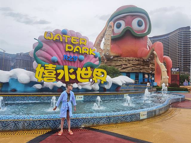 记得出发水世界前,让酒店送来浴袍,玩好一披就好,到空调车也不冷。大型项目,像大喇叭这些除了身高要求140,还要体重45kg以上,哥哥也没得玩,只能玩小项目,比如冲浪池这些还是有的,和高楼的都差不多,没有性价比,但是孩子觉得有水就开心,玩了一个半天。
