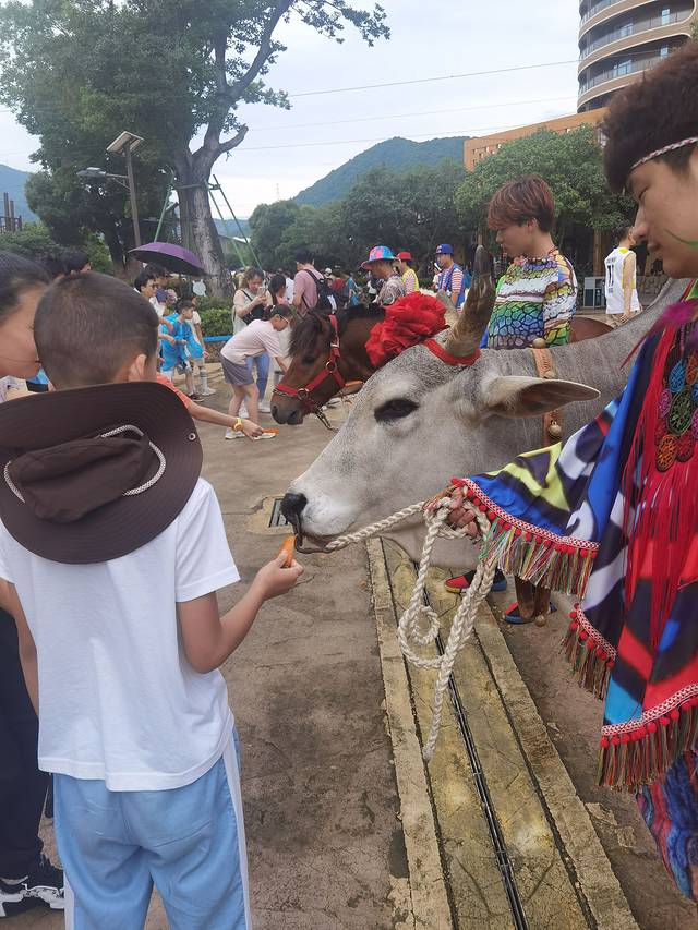 卡好开园时间后十来分钟过去,大部队进去了,门口有动物欢迎会,很多动物在门口候着,这时候拿出自备的食物,喂!