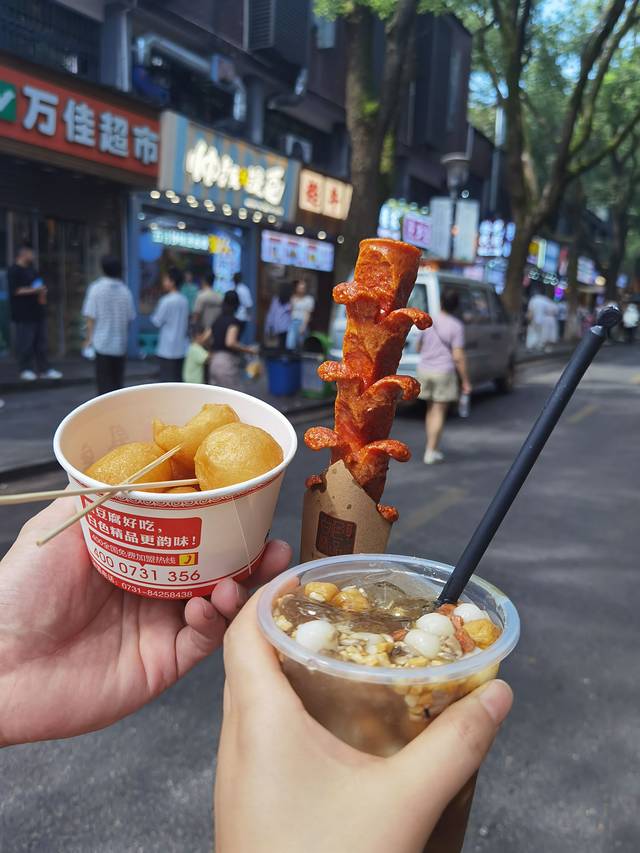 长沙满大街的茶颜悦色,很多很多家,口味都是一样的,很好喝,主要是每家都要排队