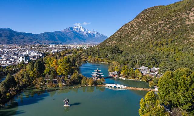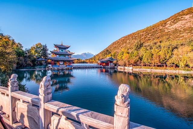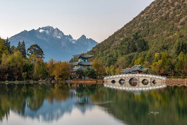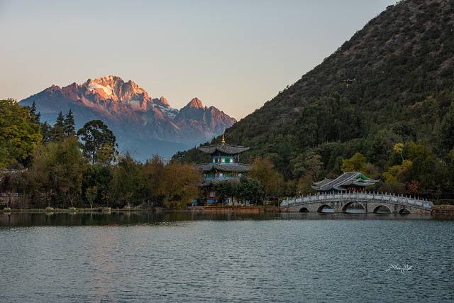 玉龙雪山 海拔5596米,是很多人看到的第一座雪山,而 丽江 古城旁的黑龙潭看 玉龙雪山 ,却是最佳角度。行走到黑龙潭公园,这里的每一座桥每一条石板路都充满了一种慵懒的气息,让人来过,就不想离开。