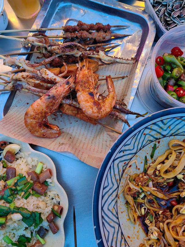 烤串,海肠拌饭,胖胖家的面