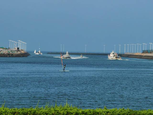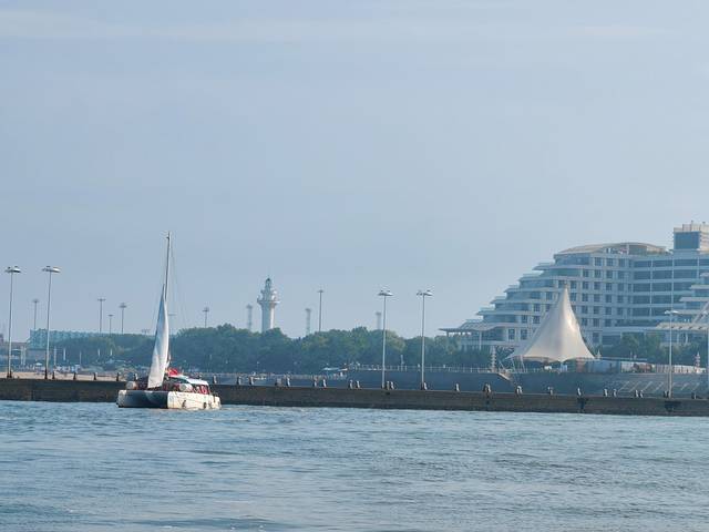 游客们坐所谓的帆船转悠半小时。