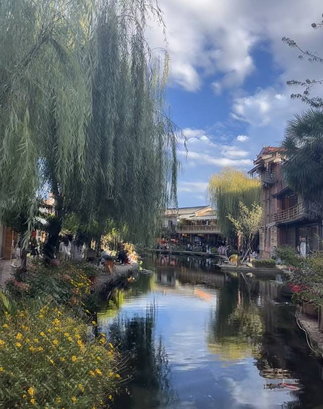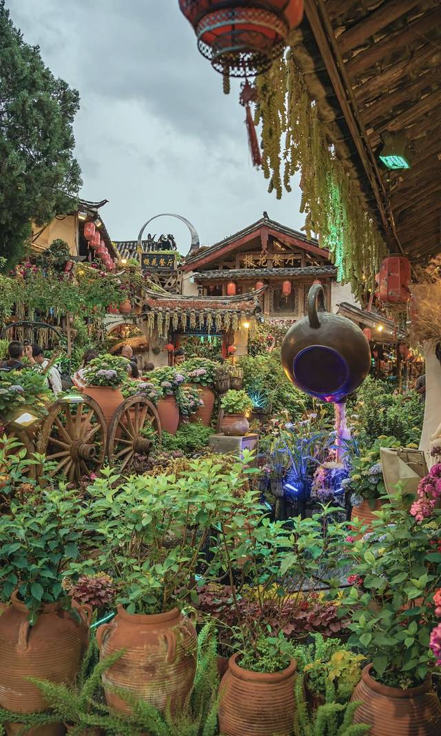 古城里保护和修缮做的很好,花、草、树等各种绿化在各种小巷子里随处可见,青石板街、木制门窗、纳西古乐等尽显历史厚重。很多商店装饰也非常有特色,门口种满了各类真实的花草,古城浪漫的氛围感更显浓郁。丽江古城布局错落有致,既有山城的风貌,又有水乡的韵味,既可以登高望远,还能见小桥流水。