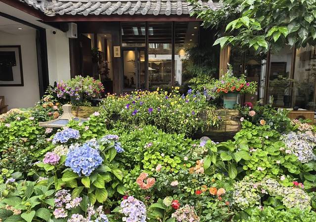 这家餐厅分为上下两层,当你踏入一楼,便能立刻感受到它独特的氛围。驻唱歌手懒洋洋地哼着民谣,那悠扬的旋律仿佛能将人的心弦轻轻拨动,让人在品尝美食的同时,也能沉浸在这温馨而惬意的环境之中。餐厅的后院更是一处精心打造的小花园,绿树成荫,繁花似锦,为用餐增添了一份自然与宁静的美好。
