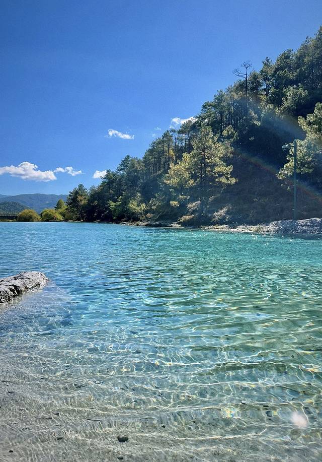 坠入人间仙境般的存在,山谷下波光粼粼,仿佛上帝遗落在人间的蓝宝石